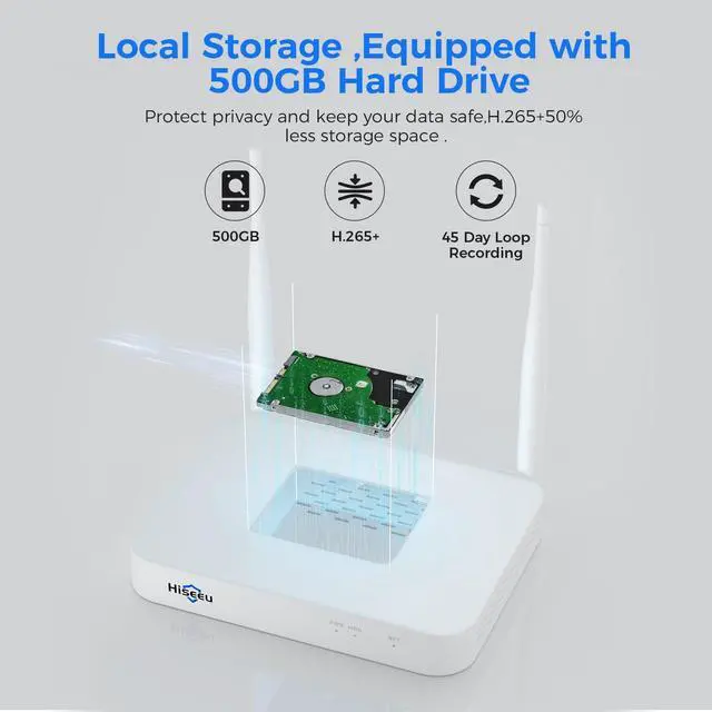 Local Storage + IP65 WaterproofThe NVR has already been pre-installed with a 500GB hard drive. You don't