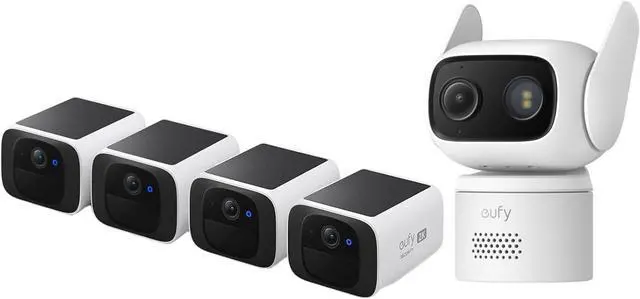 What You Get: eufy Security S220 SoloCam 4-Cam Pack & eufy Wired Cam C31 (Bundle)