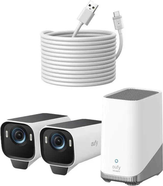eufy Security eufyCam S3 Pro 2-Cam Kit + eufy Security 15ft/4.5m USB-A to USB-C Power Cable,Solar Camera Outdoor Wireless, MaxColor Night Vision, 4K Security Camera with Solar Panel, Face Recognition