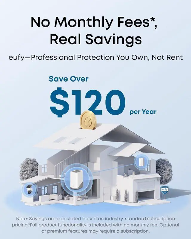 , | Store your footage locally with an SD card (sold separately). No subscription. No monthly fee. Ever! Saves you over $120 per year!