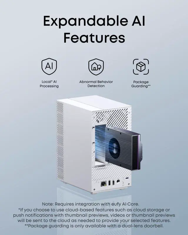 Advanced Al Upgrades: Add eufy AI Core to unlock advanced Al-powered features for a truly comprehensive security experience.