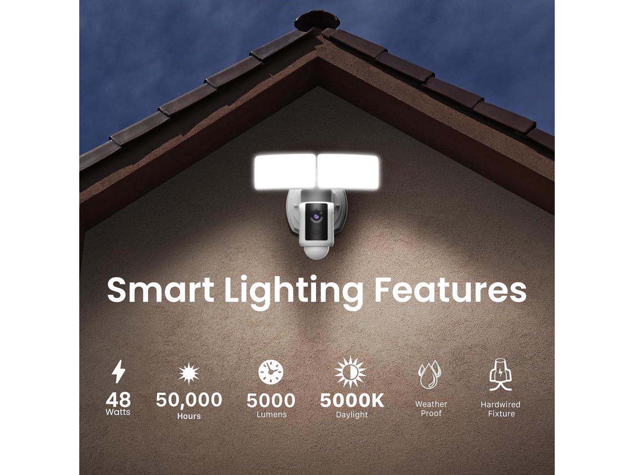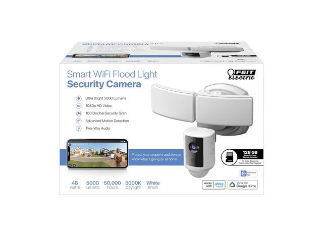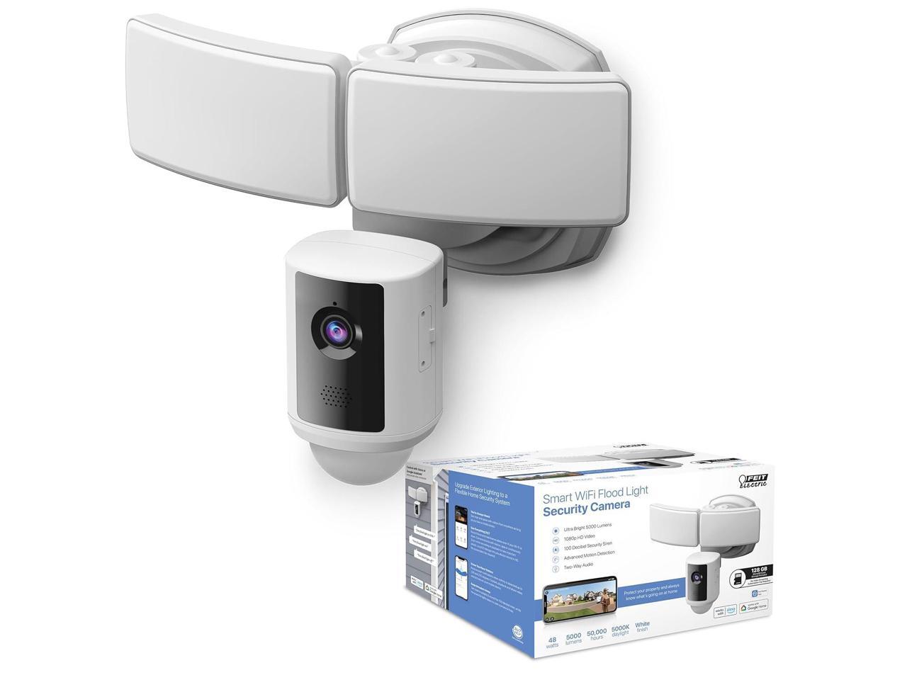- SUPERIOR ILLUMINATION AND SECURITY - The Feit Electric Outdoor LED Smart Wi-Fi Camera Floodlight delivers an impressive 5000 lumens of bright, clear lighting, ensuring your outdoor spaces are well-lit and secure at all times. Ideal for driveways, patios, and