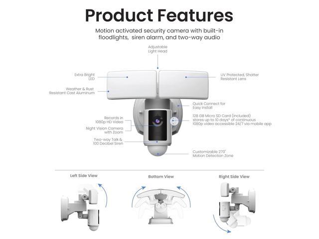 Feit Electric SEC5000/CAM/WIFI Outdoor LED Smart Security Camera with Motion Sensor, 2-Way Audio, 5000 Lumens Floodlight, Works with Alexa and Google Asst, Alarm, Hardwired, Updated Version of SEC3000