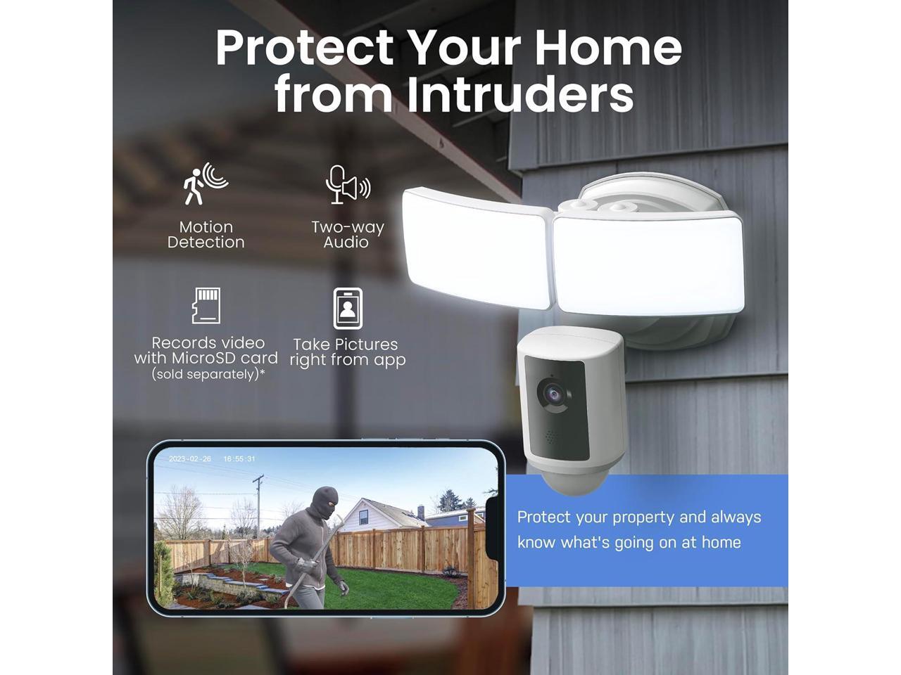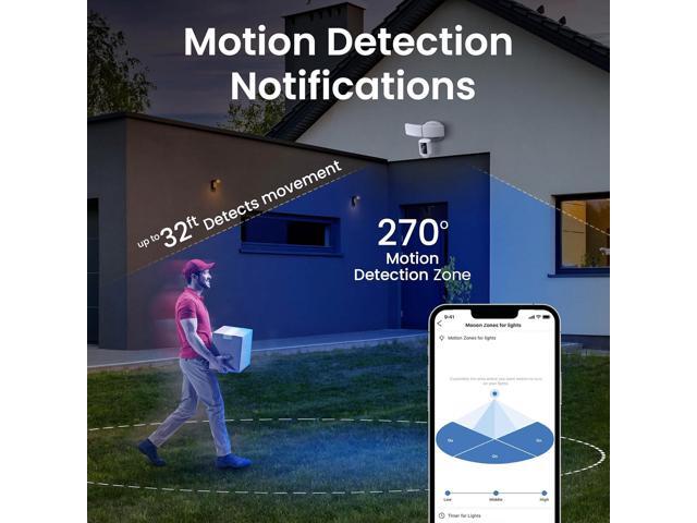 - ADVANCE MOTION DETECTION - Equipped with a high-precision motion sensor, this floodlight activates upon detecting movement, with a highly sensitive motion sensor that detects movement up to 32 feet away, instantly illuminating the area and recording HD video. Customize motion detection zones to focus on critical areas, minimizing false alarms and enhancing surveillance accuracy.