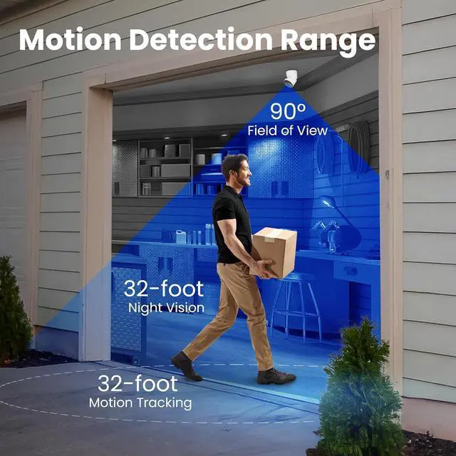 ADVANCED MOTION DETECTION & INFRARED NIGHT VISION Intelligent human motion detection technology reduces false alarms by distinguishing between people and other movements. Combined with crystal-clear day vision and infrared night vision, this camera offers round-the-clock surveillance, ensuring your garage is always protected.