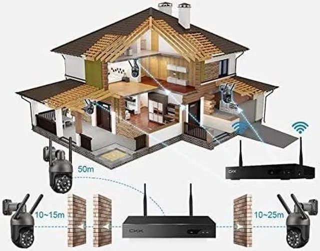 C102 3K Wireless Security Camera NVR System with 1TB This wireless security camera system comes with 4pcs 5MP PTZ cameras, which have been auto-paired with NVR before packing.It was a very easy installation since all four cameras are wireless, although you need to find a good location for an electric outlet to plug each camera.The power cord of each camera is 10ft long.