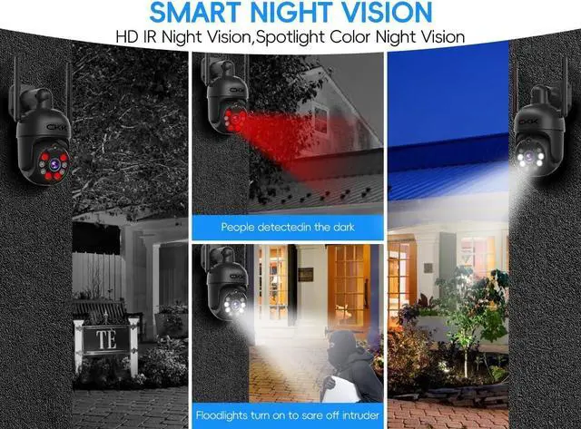 Daul WIFI Connection & Video Record: outdoor WiFi security camera support 2.4G & 5G Wi-Fi. The security cameras outdoor support cloud storage or SD card (not included) to preserve your video, 24 / 7 recording, don't worry about missing any important information.
