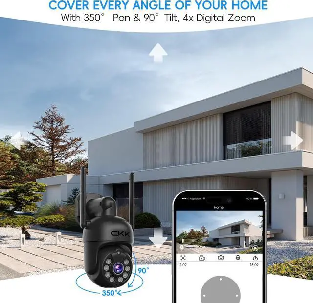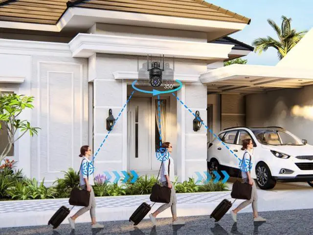 5MP HD Video Quality: Adopts 5MP ultra clear all glass lens, which presents a much more clear image than 3MP cameras. As well as 4X Digital Zoom for closeup while viewing videos, you can see and grasp the finest key details in clarity.You can control the 350°horizontal and 90°vertical pan and tilt remotely via phone/tablet/PC which offers you no blind area vision.