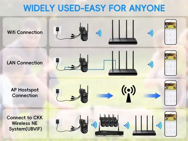 Remote View from anywhere anytime: The free app EseeCloud/ CKK lets you see all of your cameras in one place once connect the NVR to router . Check in on your home or business wherever you have an internet connection. Easy Remote Viewing and Video Playback,You can watch live or playback video records on your mobile app/ PC Client Software remotely or NVR monitor locally.