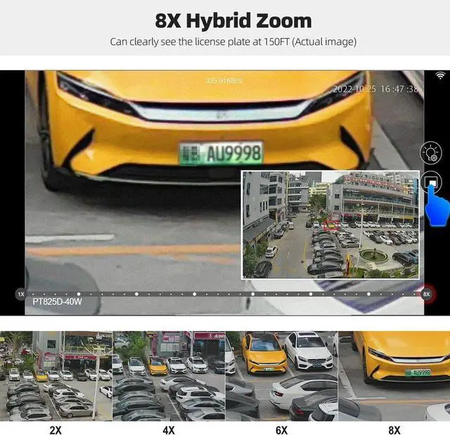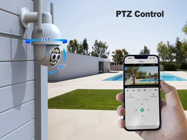 Pan & Tilt, Dual Lens & 8X Hybrid ZoomBy Pan 355° Tilt 90°, the PTZ WiFi outdoor camera, allows you to move the security camera left/right up/down to get any picture you want. With a wide angle and telephoto dual lens design, you could see both a wide field of view and detailed close ups. Thanks to the dual lens design, it makes this home security camera achieves captures distant details with ease and 8x hybrid zoom at the same time.