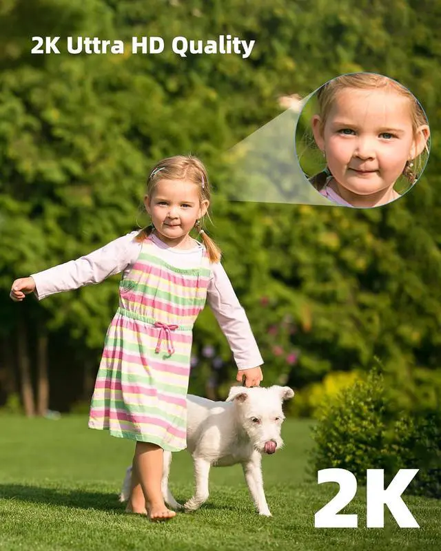 2K Ultra HD & Full Color Night Vision: Experience crystal-clear 2K resolution (2304x1296p) with enhanced detail day and night. The built-in spotlight activates full-color night vision for vivid monitoring, even in low-light conditions.