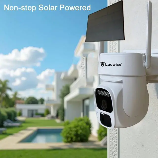 100% Wire-Free Easy SetupThe solar security camera works on WiFi and continuously powered by the 3W solar panel, freeing you from frequent battery charging hassles. With this easy-to-install wireless camera, you can build up your independent security system within minutes. Wide Angle Coverage & Remote Access: 355° horizontal and 90° vertical rotation, allows you to move the camera left/right up/down to get the picture wherever you want.With the free O-KAM PRO app, you can remotely view and con