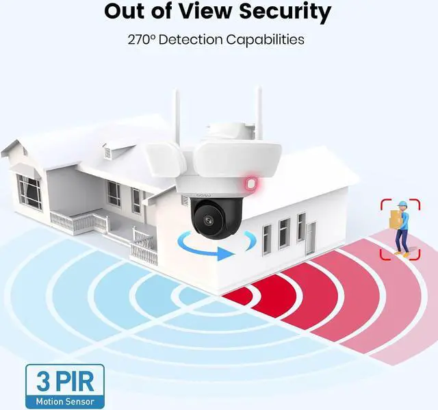 ^^Out of View Security: 3 PIR sensors offer a 270° detection area. This ensures that even objects out of sight can still be detected. The lens will adjust and start tracking once it senses someone. ^^3K Clarity with 6x