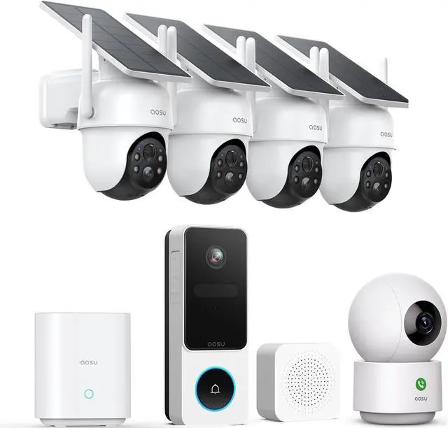 AOSU Security Cameras Outdoor Wireless, 4 Cam-Kit, No Subscription, Solar-Powered, Home Security Cameras System with 360° Pan & Tilt, Auto Tracking, 2K Color Night Vision, Easy Setup, 5G & 2.4G WiFi