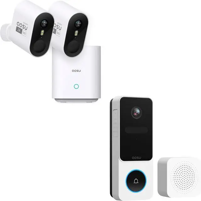 Real 2K HD aosu WirelessCam Pro System 2 Cam Kit - Security Camera Outdoor, Wireless Home Security System. 60% improved from 1080p. You can record videos and capture photos with picture-perfect detail and colour, see who's there even at night in superior clarity with aosu outdoor camera wireless.