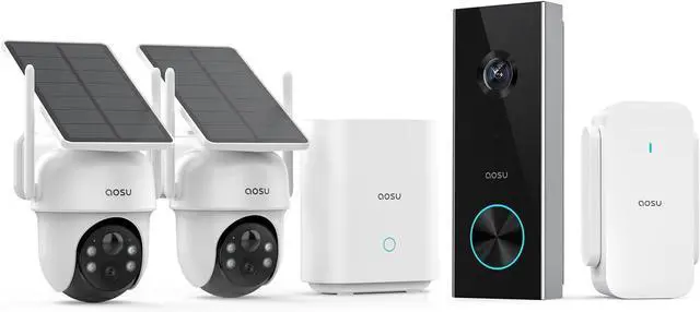 AOSU Security Cameras Outdoor Wireless, 2 Cam-Kit, No Subscription, Solar-Powered, Home Security Cameras System with 360° Pan & Tilt, Auto Tracking, 2K Color Night Vision, Easy Setup, 5G & 2.4G WiFi