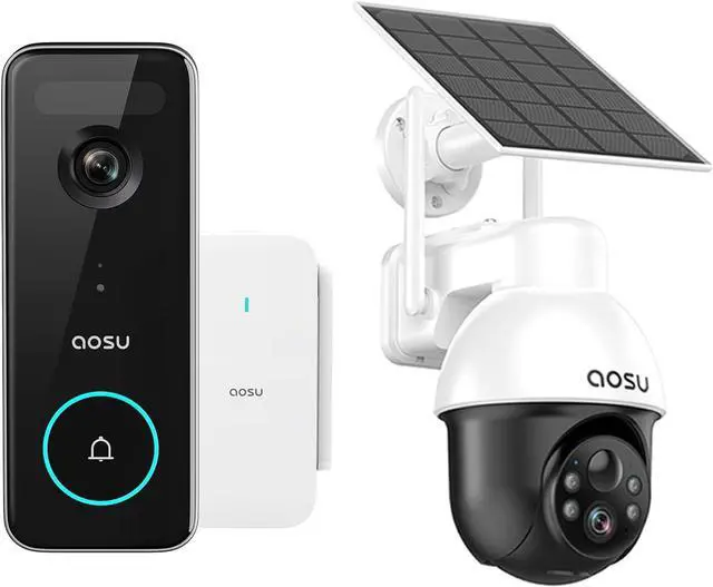 5MP Doorbell Camera: AOSU Doorbell Camera Wireless, 5MP Ultra HD, No Monthly Fee, 2.4/5 GHz WiFi Video Doorbell with aosuBase Mini, Battery/Wired Powered, Work with Alexa & Google Assistant