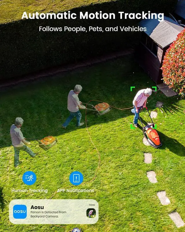 Enhanced AI Detection: Our advanced security camera recognizes people, vehicles, and petsall without a subscription fee. Intelligently monitor parked cars, when someone enters the parking zone, the outside surveillance camera will send instant alerts. Our solar camera also identifies fences and walls to prevent intrusions.