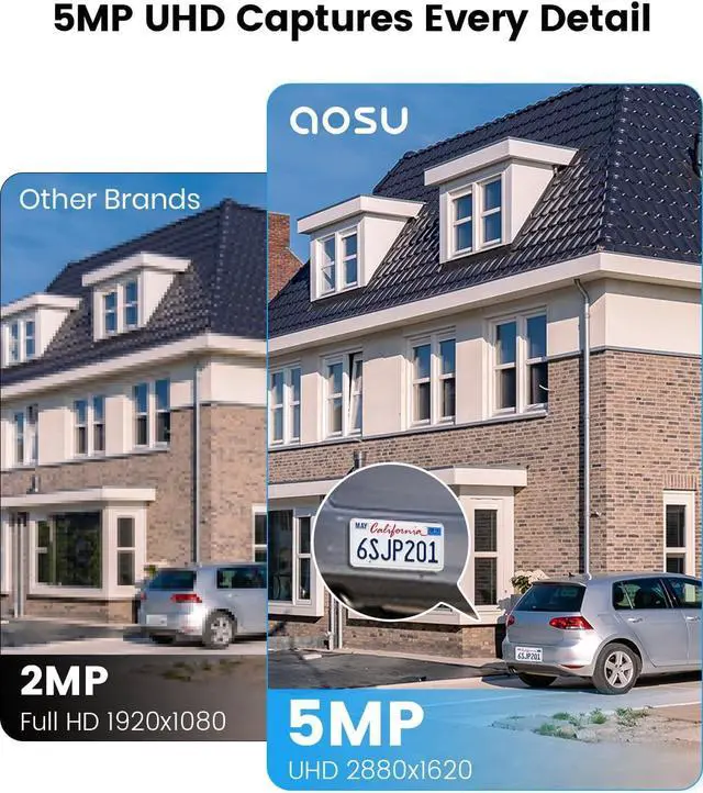 360° Full-Coverage & 3K Resolution: AOSU security camera guards your home and leaves no spot unseen with a 360° panoramic view. The upgraded 3K, 5MP UHD lens lets you see everything clearly. The built-in 400-lumen spotlight lights up the night as if it were day, providing true full-color night vision.