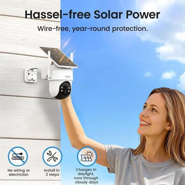 Solar Powered & Wire-Free - Hassle-free 3-step setup; no wiring, no electrician, no battery swaps. High-efficiency solar panels charge in daylight and keep your 8-cams running smoothly, rain or shine, for year-round, low-maintenance security.