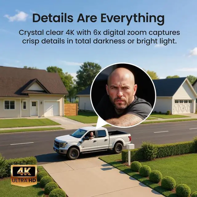 Stunning 4K Night Vision & Smart Detection Each wireless outdoor security camera delivers vivid 4K TrueColor Night Vision for clear, vibrant footage, even at night without floodlights. Triple AI Detection precisely identifies people and activity while reducing false alertsideal for wireless security cameras outdoor monitoring.