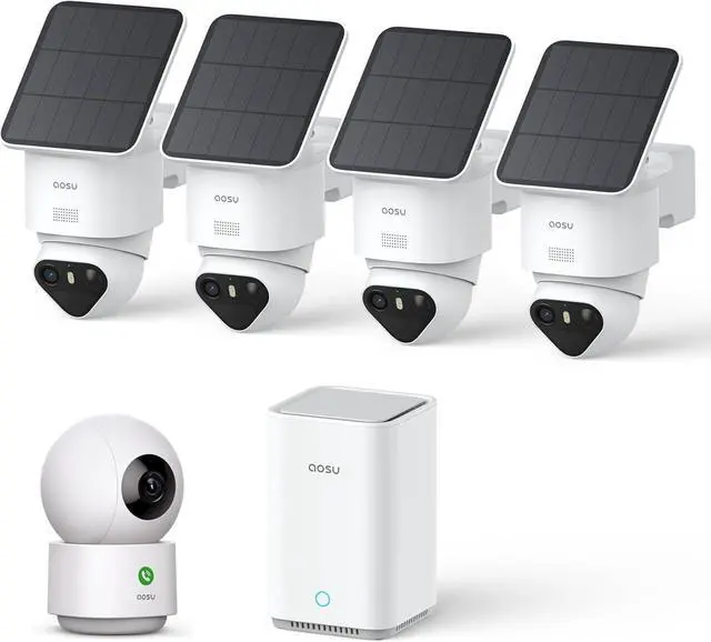 Easy Installation, Continuous Power Set up your solar camera outdoor wireless system in minutesno professionals needed. Each security camera outdoor runs continuously with solar power, and detachable panels make maintenance simple. Plug into the aosuBase, and your system is ready to monitor your property effortlessly, day and night, rain or shine.