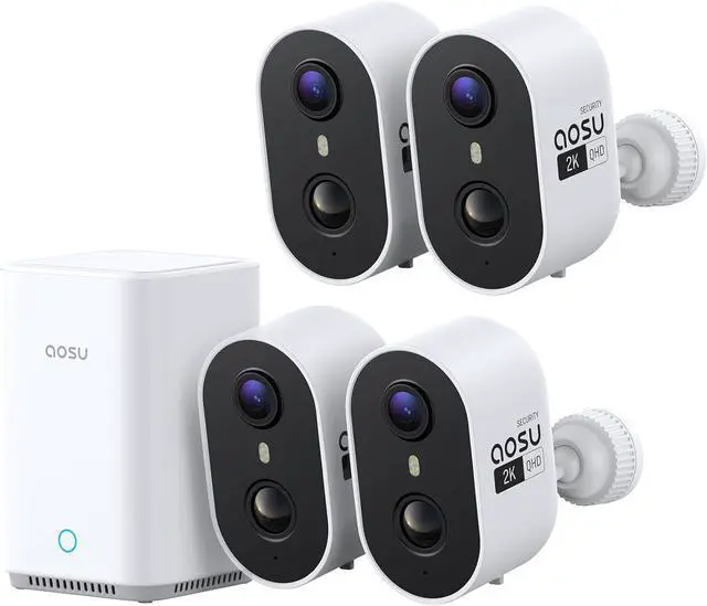 aosu Wireless Indoor/Outdoor Security Camera Kit with aosuBase Local Storage, 2K with 6X Zoom, 4-View Live, Cross-Camera Person Timeline, PIR + AI Human Detection, Color Night Vision, 4-Cam-Kit