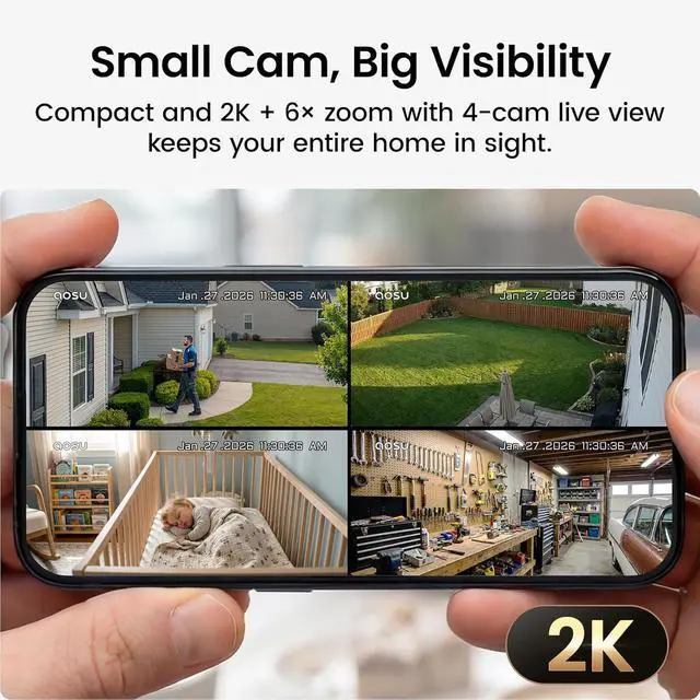 2K Clarity + 6X Zoom to See the Details That Matter: Capture crisp 2K video and zoom in up to 6X to check faces, packages, and other important details. Perfect for everyday home security without complexity.
