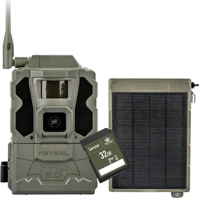 Includes Tactacam Reveal Pro 3.0 Trail Camera, Tactacam Reveal Solar Panel, and Lexar 32GB SD Card by Trail Cams Galore, a Trademarked Brand. The Tactacam Reveal Pro 3.0 is highly adaptable. It can be paired with optional accessories such as solar panels for extended battery life, and it is designed to work on multiple cellular networks, giving you flexibility in choosing your cellular provider.