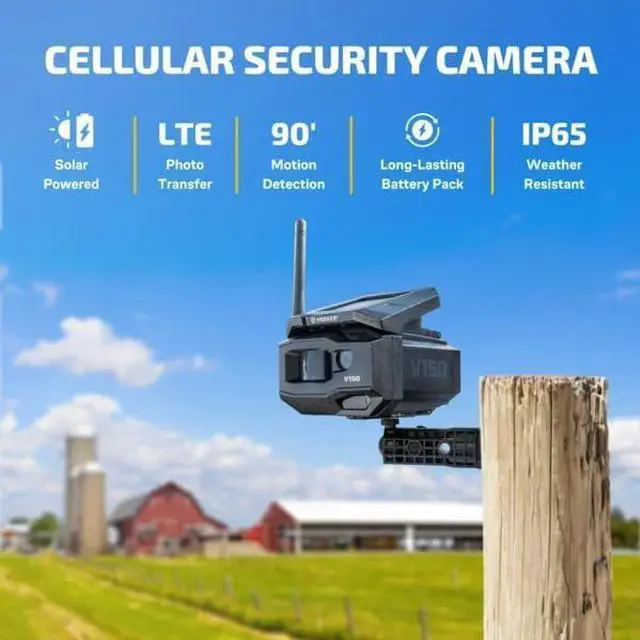 The V150 is a 100% wireless and portable security camera equipped with VOSKER built-in solar panel technology & a long lasting 10 000 mAh rechargeable lithium battery. This LTE-based cellular security device is ideal for remote area photo surveillance where access to electricity and Wi-Fi network is impossible. Receive mobile alerts right to your phone and never miss anything again. Set it up easily and let it get to work, anywhere you need it. FEATURES: 100% wireless: Works Without Wi-Fi or Electricity 4G/LTE Cellular Connectivity Built-in Solar Panel Technology for Maximizing Battery Life Motion Activated 1080p FULL HD Photo Recordings 90 ft Motion Detection 43.6° Angle View Long-Lasting rechargeable Lithium Battery (10 000 mAh) / Removable VOSKER SENSE AI Image Recognition Instant Mobile Alerts to Your Phone 7-day FREE Elite Mobile Security Plan Offered VOSKER Two (2) Year Limited Warranty. HOW TO SET UP: Before you begin setup, we recommend what you test the coverage of the location you'll be placing your camera. To do so turn on the camera. The camera will begin to search for the signal and the status light will flash green. Once the signal is stable, you should see a steady orange or green light (depending on coverage availability). For more information on setting up the camera refer to the video in this product page. Red indicates that there is no signal. The following steps should help resolve this: Try turning off your camera and turning it back on. Try positioning the antenna at a different angle or try moving your camera to a different location. When the front delay LED indicator begins flashing red, a 30 second countdown will start before the photo mode is activated. When all the lights on the camera turn off, the camera is ready to use. The camera has now updated its status with its latest information. The camera is now ready to take pictures and transmit them to your VOSKER app.