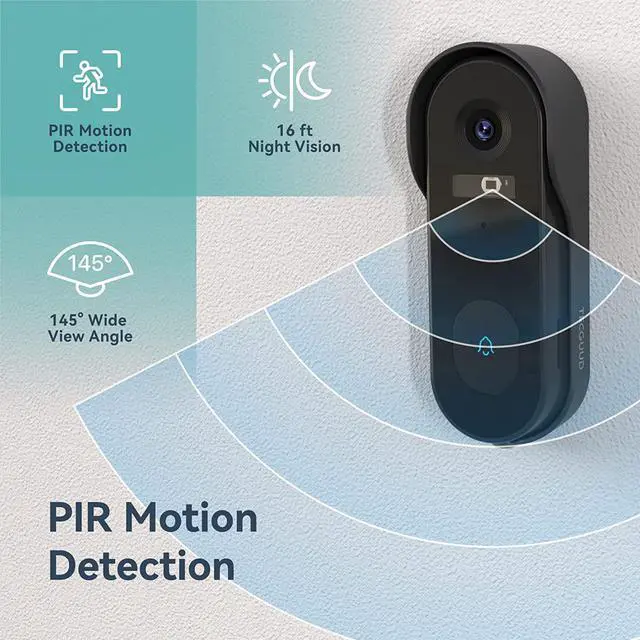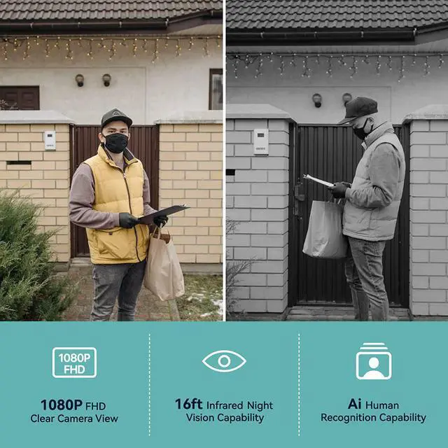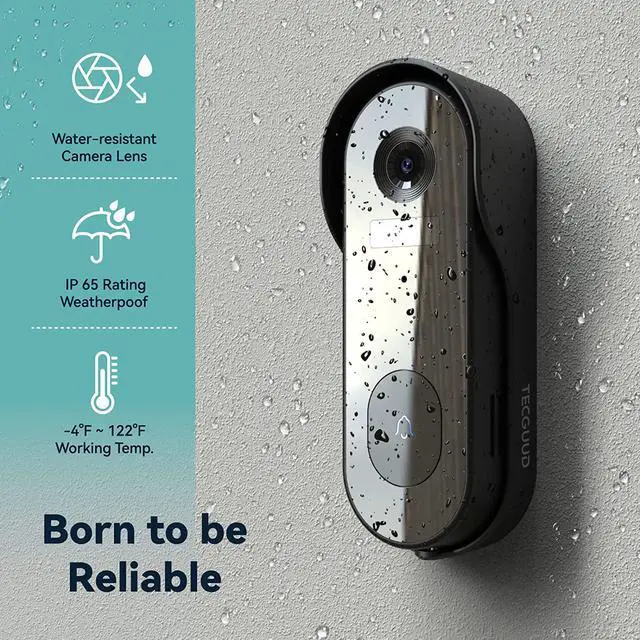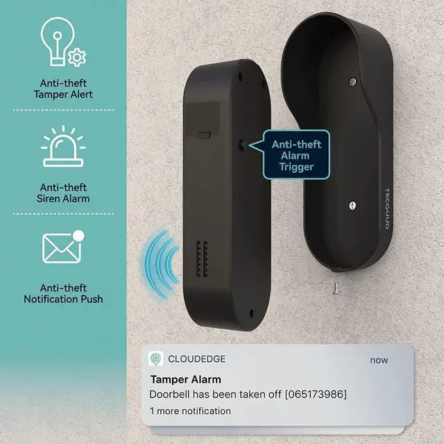 Wire-free Smart Doorbell Camera with Cordless ChimeTECGUUD front door camera is powered by built in 5000mAh rechargeable Lithium battery, no more annoying with wires/cables problem, the included door bell ringer powered by 3 AA batteries and carry 4 ringtones, pick up the one you like as a reminder, never miss any visitor calls when the phone is muted or not around^^Easy Installation with Tamper Alarm TriggerThere is a tamper alarm button behind the security doorbell, it will be pressed when you install the video doorbell correctly, the button will bounce back and an alarm will sound if someone intend to separates the doorbell from the shell, feels much more secure with the key feature^^Pre-recorded Voice Message with 2-way AudioTECGUUD doorbell camera system equipped with advanced high db microphone & speaker, which supports the real-time speaking directly to anyone who approaches your front door without having to get up and answer the door, you can leave 3 10 seconds voice message in the cloudedge APP, choose the one for quick replies in case youre not available to talk or in a hurry^^Human Detection with Instant Mobile AlertThe ringer doorbell camera is in sleep mode to long lasting the battery life, only working&recording when you do the live streaming, motion detectived or someone ring your wifi video door cam, your phone will receive an alert notification and the records will saved to SD card or upload to cloud as soon as someone is detected (32 SD card is Pre-installed, cloud service is optional), advance AI human detection reduced false alarm^^Professional Customer ServiceTECGUUD video doorbell only supports 2.4 GHz wifi, and the camera can wake up approximately 900 times after battery be fully charged, the chime can sound about 8, 000 times before battery dies.