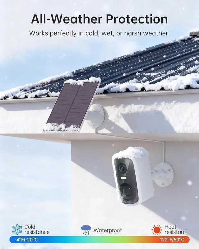 100% Wireless & Solar PoweredThis outdoor camera wireless is equipped with high-capacity rechargeable batteries that can be fully charged via the included solar panel, ensuring continuous power without the need for regular battery changes. Enjoy uninterrupted, long-term monitoring without hassle.