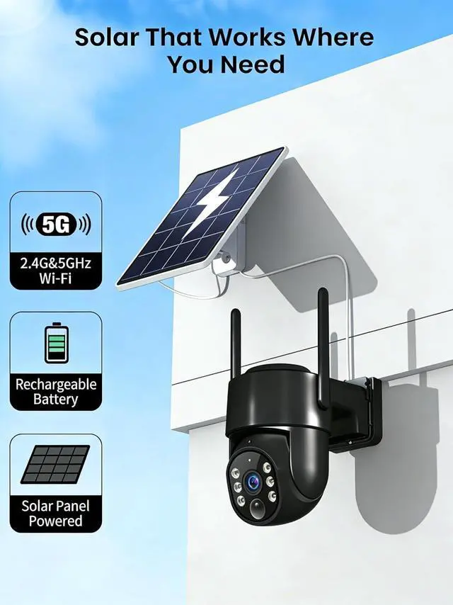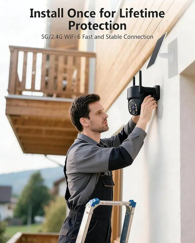 • 100% Wireless Solar & Battery Powered: Enjoy true wireless installation with no outlets or messy cables. The detachable solar panel keeps your outdoor camera charged daily, 2 hours of daily sunlight to maintain 24/7 operation. while the built-in backup battery ensures reliable protection during cloudy days or bad weather.