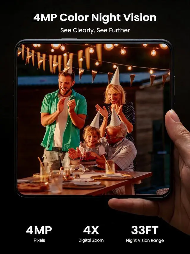 • 2K Color Night Vision with Smart Spotlight: Capture clear details day and night with crisp 2K resolution. The built-in spotlight enables full-color night vision when motion is detected, helping you clearly see people, packages, and activity even in low-light conditions.