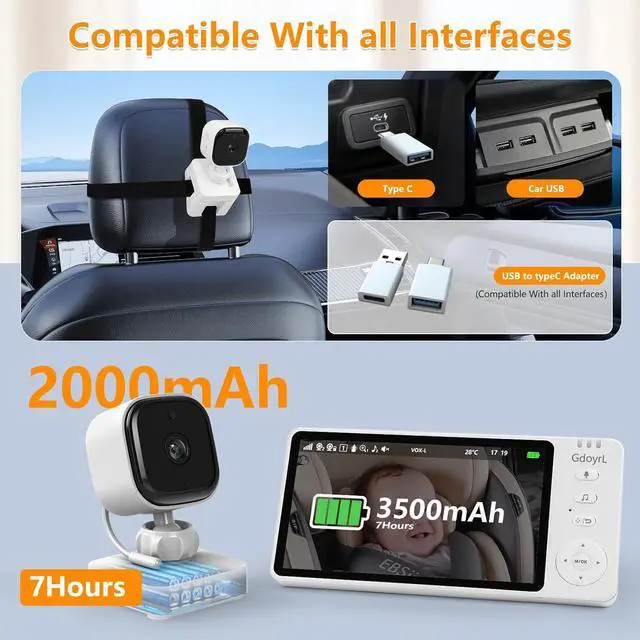 Auto-Sync Tech: Camera powers on/off with the screen.Universal Fit: Compatible with all car interfaces.Adapter Included: Comes with a USB-to-Type-C adapter.