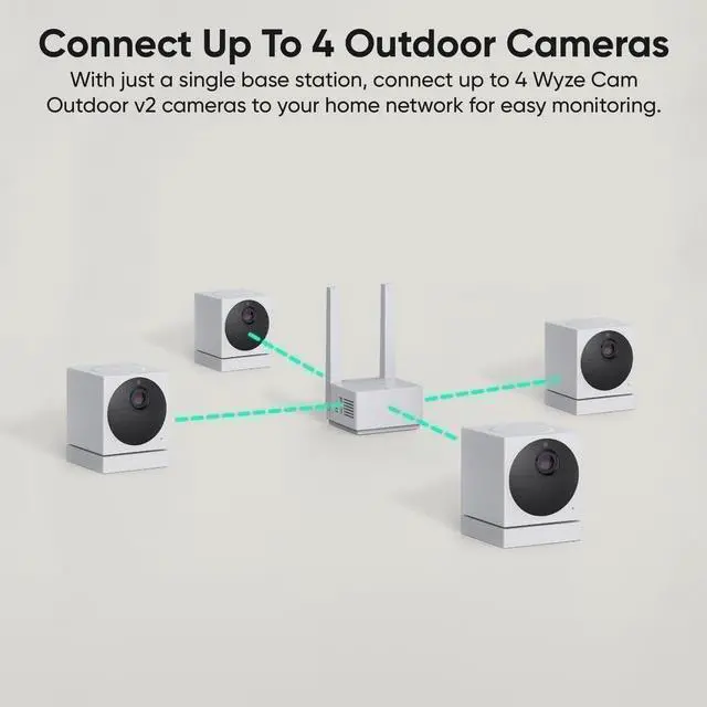Base Station Required: The Wyze wireless camera outdoor v2 requires a base station to operate. Note that this functionality is not possible using the camera alone. Connect up to 4 cameras to a single base station and view all video streams in the Wyze app.