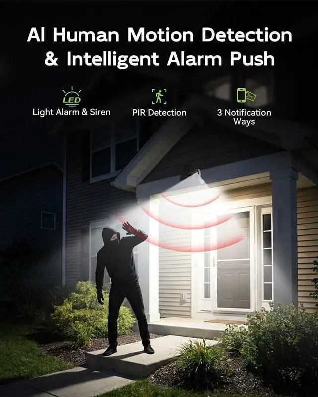 2K Ultra HD and Full Color Night VisionWorried that your security camera turns into a useless blur at night?TIEJUS security cameras wireless outdoor and Full-Color Night Vision deliver vivid, 2K-resolution video even in total darkness.Clearly see facial features, clothing colors, and identifying details not just grayscale shadows.Perfect for identifying a late-night delivery person at your front door or monitoring suspicious activity in the backyard.