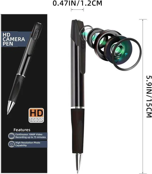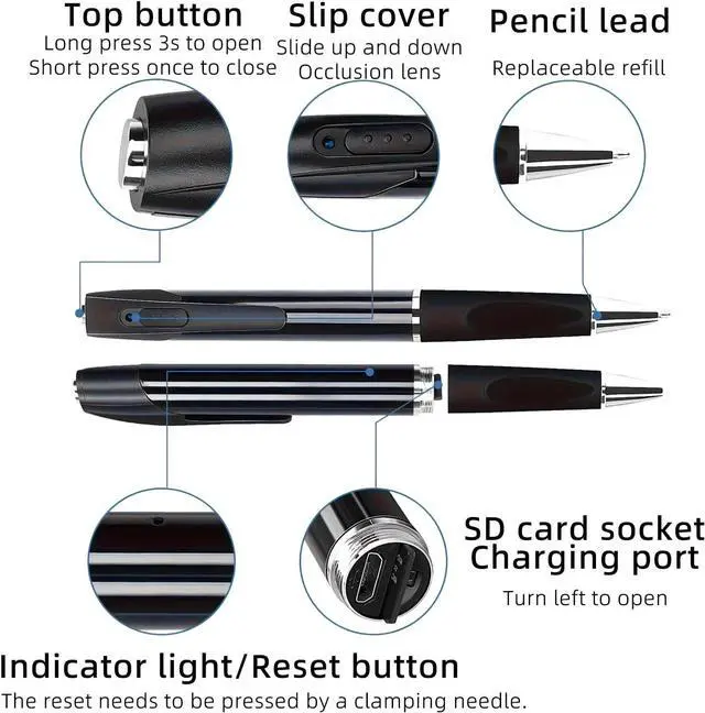 1080P Full HD Camera: This mini hidden camera pen utilizes an advanced lens system to capture clear 1080P Full HD video footage. Simple one-button control system, long press the top button, the camera will start and start recording video, achieving clear and detailed monitoring.