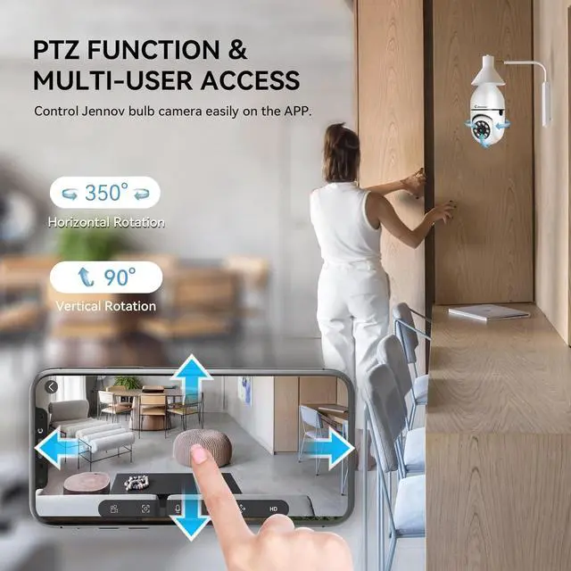 2K HD & Advanced Color Night VisionThis light bulb security camera delivers crystal-clear 2K resolution footage, capturing vivid details in both daylight and low-light environments. Equipped with 4 high-power IR lights and 4 yellow flood LEDs, it offers three night vision modes (Infrared, Color, Smart) to ensure sharp, full-color imaging at night. Enjoy 24/7 peace of mind with superior clarity for indoor/outdoor surveillance.