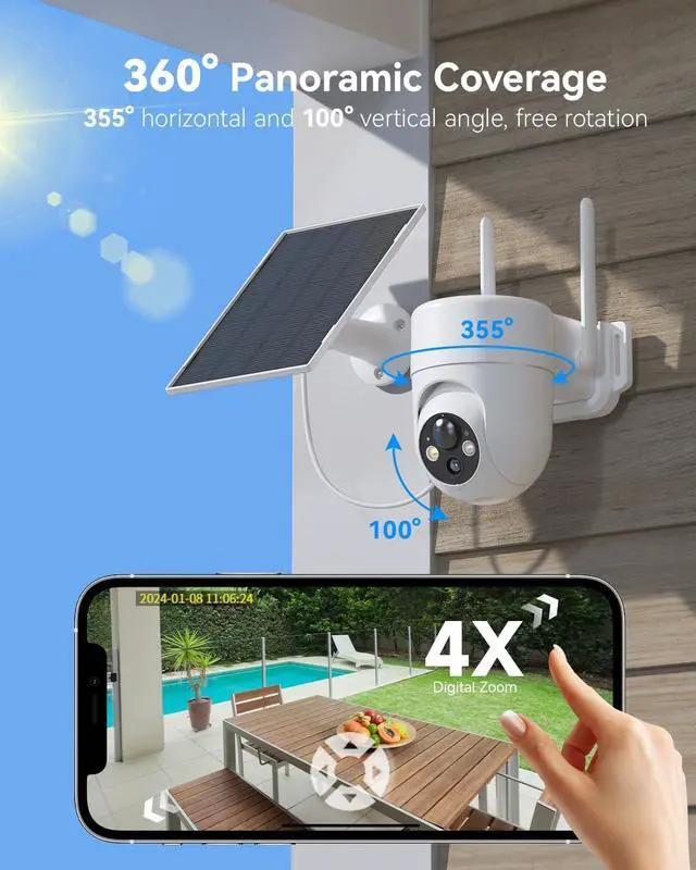 Truly Wire-Free: Enjoy the convenience of a solar security camera that powers itself. With its integrated solar panel, this wireless camera outdoor guarantees year-round operation.