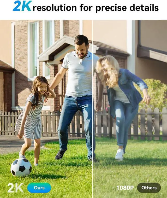 See Everything in 2K HD: Never miss a detail with 2K resolution and full-color night vision. As outdoor cameras for home security, they offer a 360° field of view, ensuring comprehensive coverage of every corner you care about.