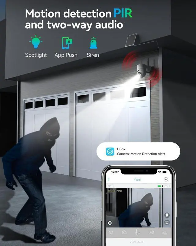 Smart Alerts and Instant Communication: Get notified from your phone. The advanced PIR motion detection in this security cameras wireless outdoor minimizes false alarms, while the two-way audio lets you speak to visitors or deter intruders directly from your phone.