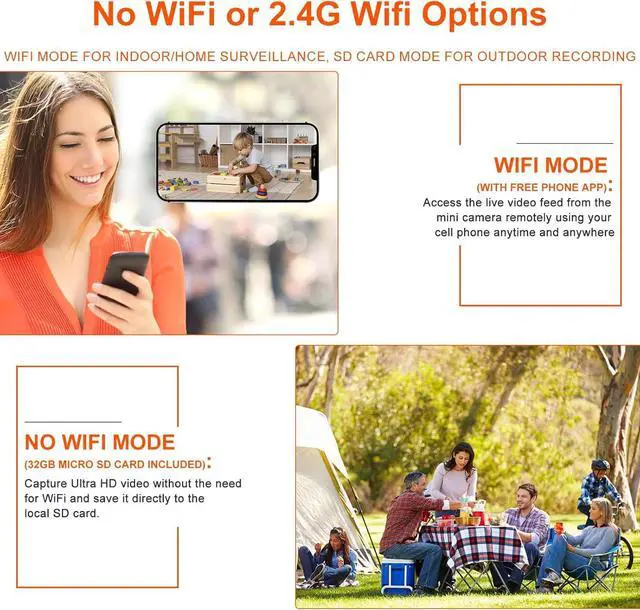 WiFi & Offline Modes This small camera supports WiFi connection or can work without WiFi for offline use. Whether you're traveling, cycling, or camping, its ready to meet your needs wherever you go.