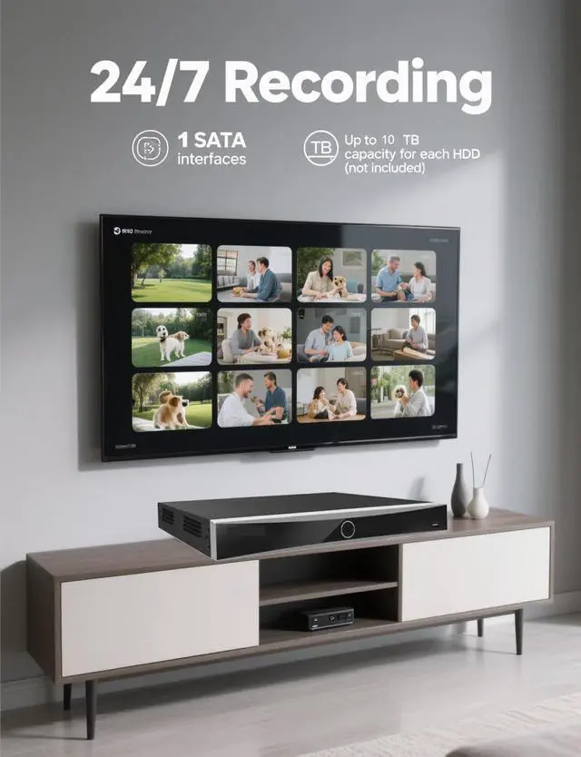 High-Performance Decoding & Smooth Playback Experience exceptionally smooth and clear live viewing and video playback. Supports a powerful decoding capacity of up to 1-ch@12 MP or 5-ch@4 MP, ensuring you can monitor multiple high-resolution camera feeds simultaneously without lag.