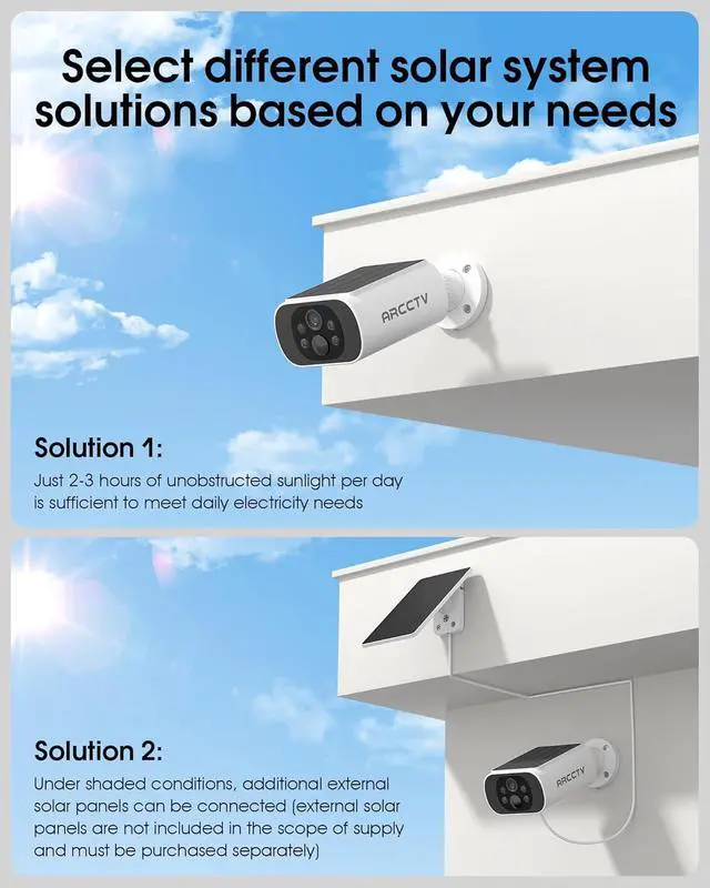 Built-in Solar Panel : The integrated high-efficiency solar panel continuously charges the camera, ensuring it remains powered without the need for manual charging or messy wiring. Install it once and enjoy maintenance-free, year-round protection.(Suitable for adding on C3 base)