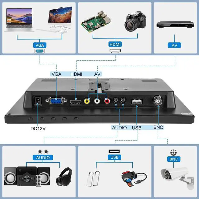 Muiti-device CompatibilityWith its comprehensive support for HDMI, AV, BNC, VGA, and USB inputs, this 10 inch monitor is the ultimate addition to your home or office. It effortlessly handles gaming, video editing, security monitoring, and everyday computing tasks, offering a dependable and robust connection across the board.