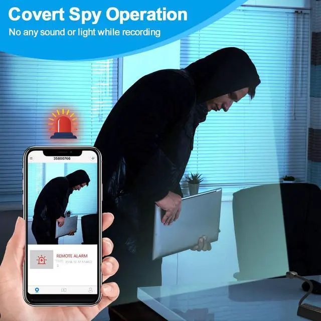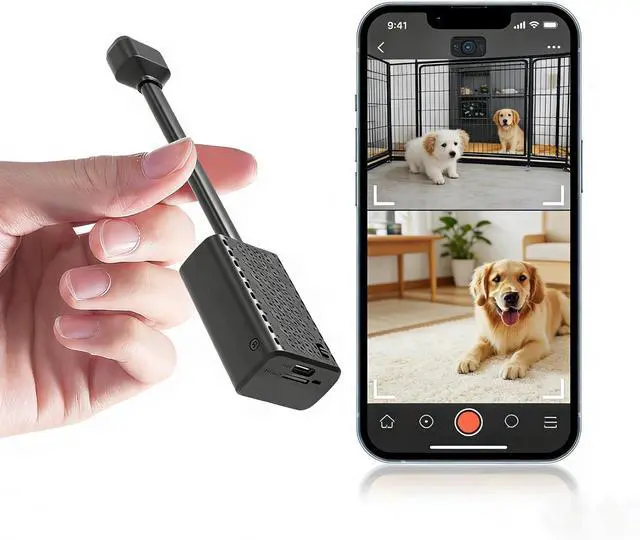 Compact and PortableThis mini camera boasts an exceptionally small and lightweight design, measuring just 6.57 × 1.38 × 0.8 inches. This wireless hidden mini camera serves perfectly as a home security camera or enables monitoring via a mobile app.