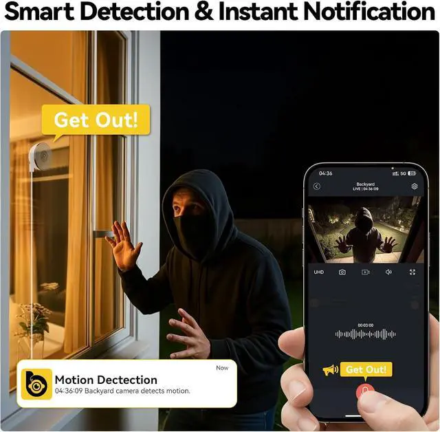 AI Motion & Person DetectionThis window security camera through glass uses advanced AI to accurately detect motion and human activity. Custom