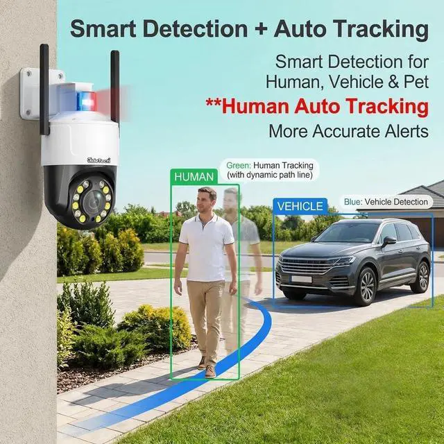 Smart Detection & Human Auto Tracking:Supports human detection, vehicle