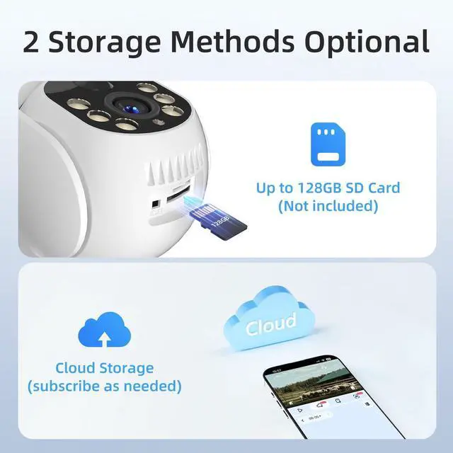 PIR Detection & Auto Tracking: The no wifi security camera features sound and light alarms that can be triggered